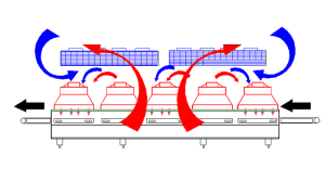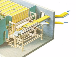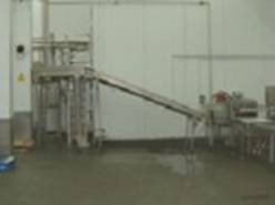 The freezer operates by automatically loading carriers, from an in-feed conveyor, hydraulically pushing them along an upper track then lowering them to a bottom track and discharging them to a conveyor situated below the infeed conveyor. These tunnels are generally used for boxes or cartons which freeze in 3 to 24 hours.